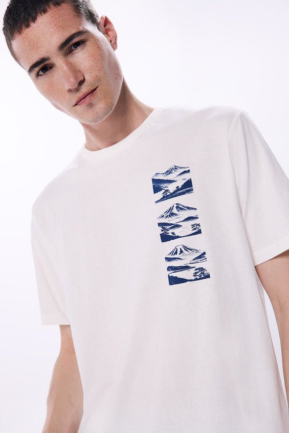 Regular fit short sleeve cotton t-shirt, round neck, Printed on front and back.